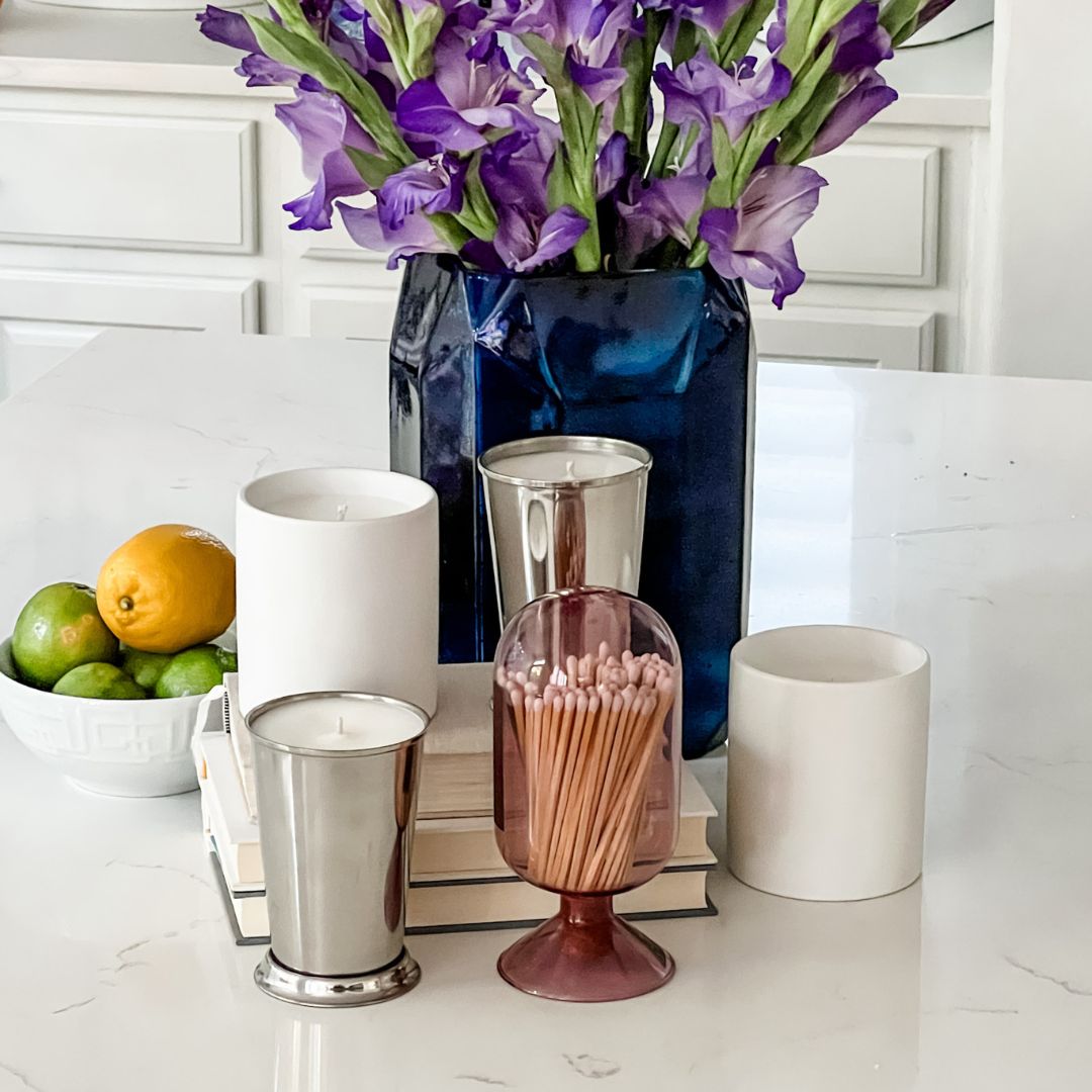Keep away from flammables, children, and pets. - Keep candles free from foreign materials, including matches and wick trimmings.
